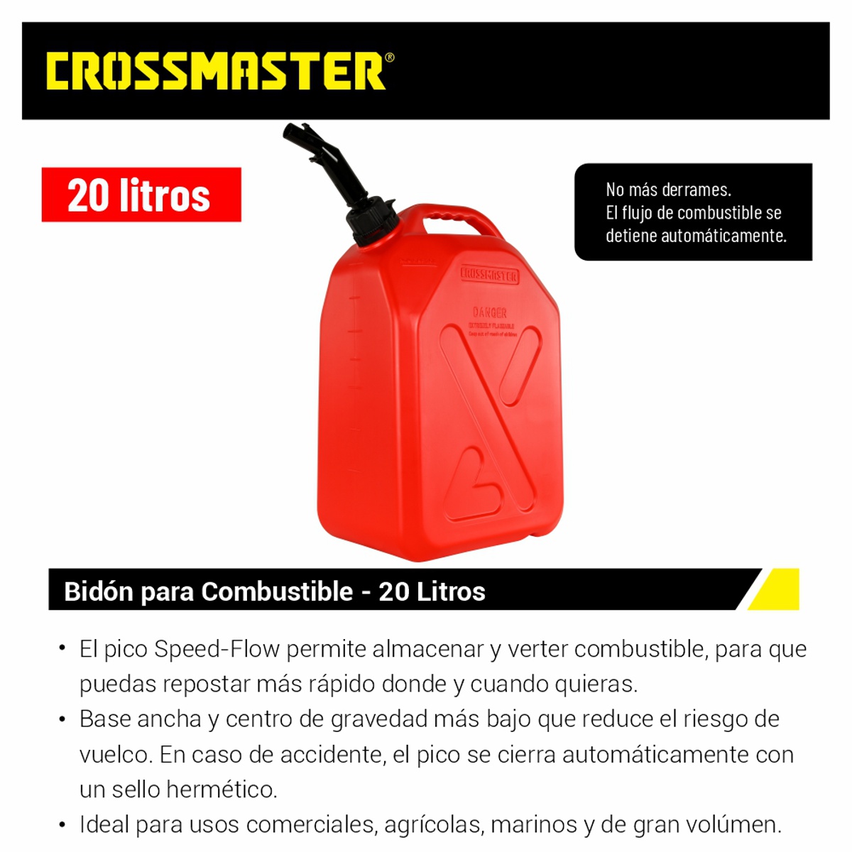 • El pico Speed-Flow permite almacenar y verter combustible, para que puedas repostar más rápido donde y cuando quieras.